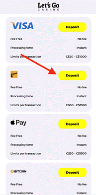 Our team deposits C$100-200 using at least three different payment methods. We note fees, limits, and processing times.
